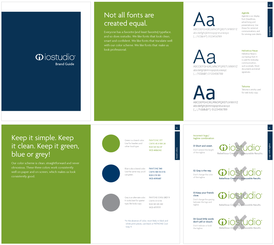 I designed these in-house brand guidelines for iostudio, an award-winning marketing agency based in Nashville.