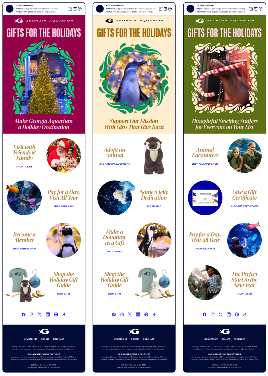 Holidays at the Aquarium: Well-timed emails were delivered to over half a million recipients during the holiday campaign.