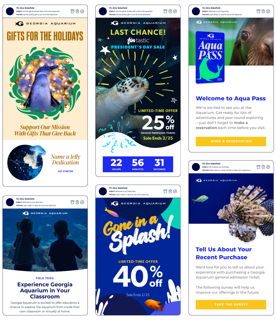 My responsibilities to connect the Aquarium’s audience with these promotions included creating relevant content to promote each campaign on GeorgiaAquarium.org, updating user flows based on input from stakeholders, crafting custom content for each email campaign, and collaborating with our team to test, launch, and sunset each campaign.